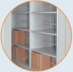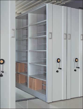 基座整體焊接合拼,節(jié)與節(jié)之間以立柱板封閉,立柱板邊沿的折彎處上開有掛孔,擱板通過掛扣鉤掛扣置于掛孔上;每層擱板一分為二,雙面擱板間距可分別上下調(diào)節(jié)。雙面擱板間有斜拉加強筋。每節(jié)雙面間以分隔棒隔開。 側(cè)面板可采用凹凸式護板或三段式護板。架體顏色及搖把樣式由用戶多種選擇。 該樣式密集架適用于要求承重較大庫房,因為密集架架體中間增加了隔板,被稱為“半封閉”或“臺灣式”手動密集架,其承重性能優(yōu)于前兩種密集架。
